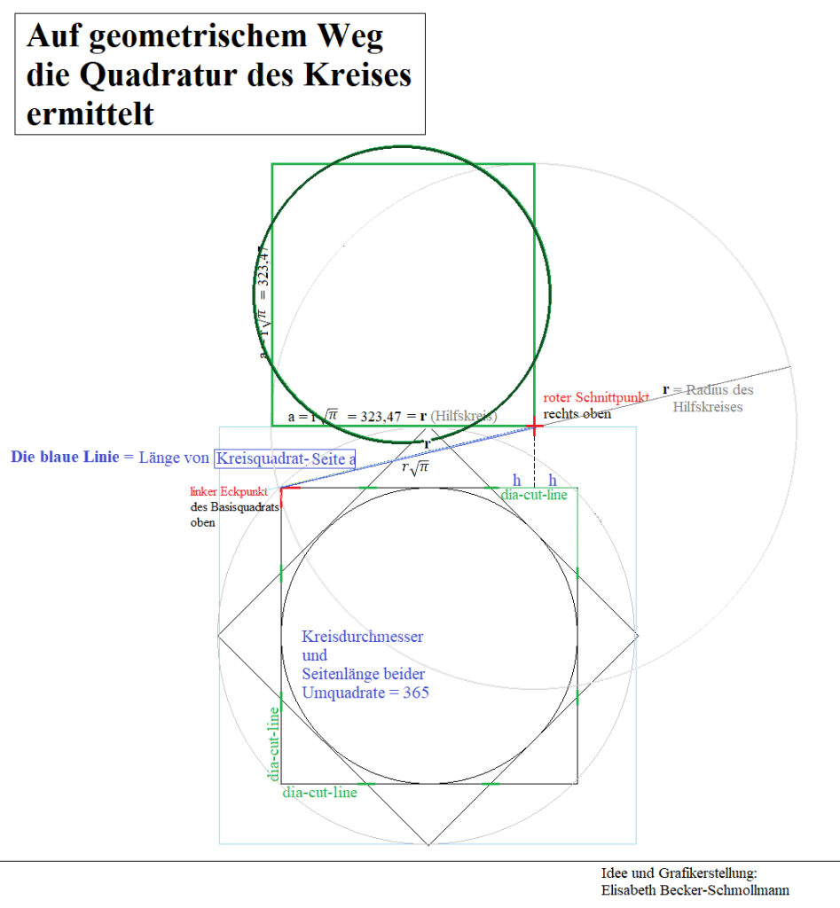 Damit entspricht die blaue Linie der Seite des Kreisquadrats: