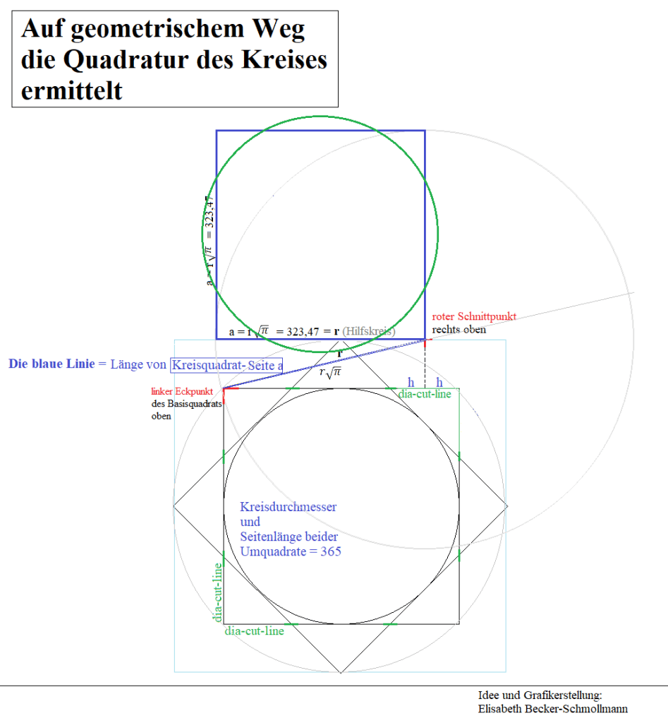 Damit entspricht die blaue Linie exakt der Kreisquadrat‑Seite: